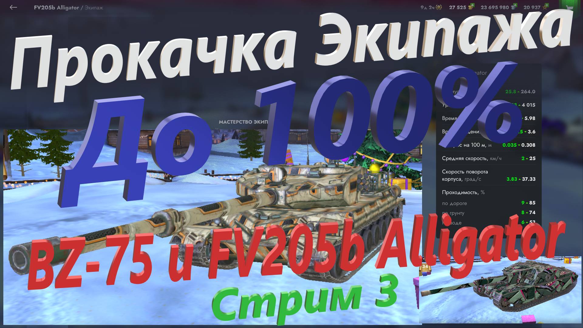 Прокачка Экипажа на 100% - BZ-75 и FV205b Alligator - Стрим 3