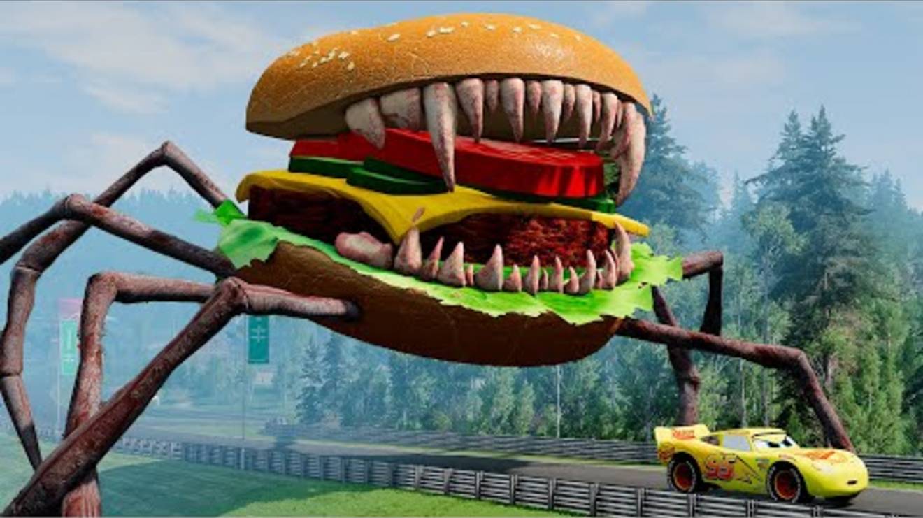 Эпичный побег от Пожирателя Молний Маккуина, Пожирателя бургеров и пожирателя бабочек |BeamNG.Drive