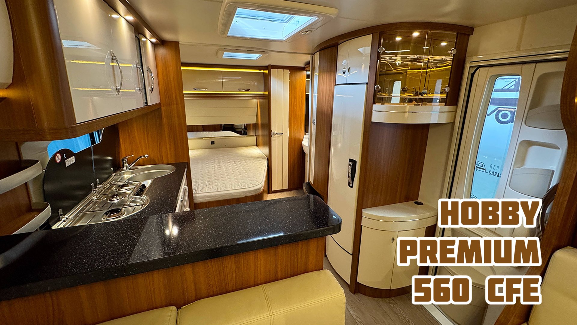 Караван Hobby премиум-класса в планировке с французской кроватью