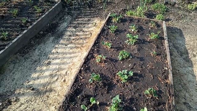 Чтобы клубника лучше наращивала листву я раскидала по грядкам азотное удобрение , по влажной земле и заделала удобрение в почву.