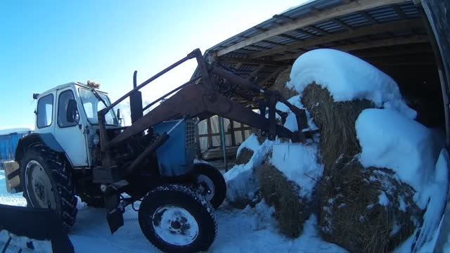 Почистил снег, пошёл дождь. Подвёз сено до весны. Февральская работа для ЮМЗ-6