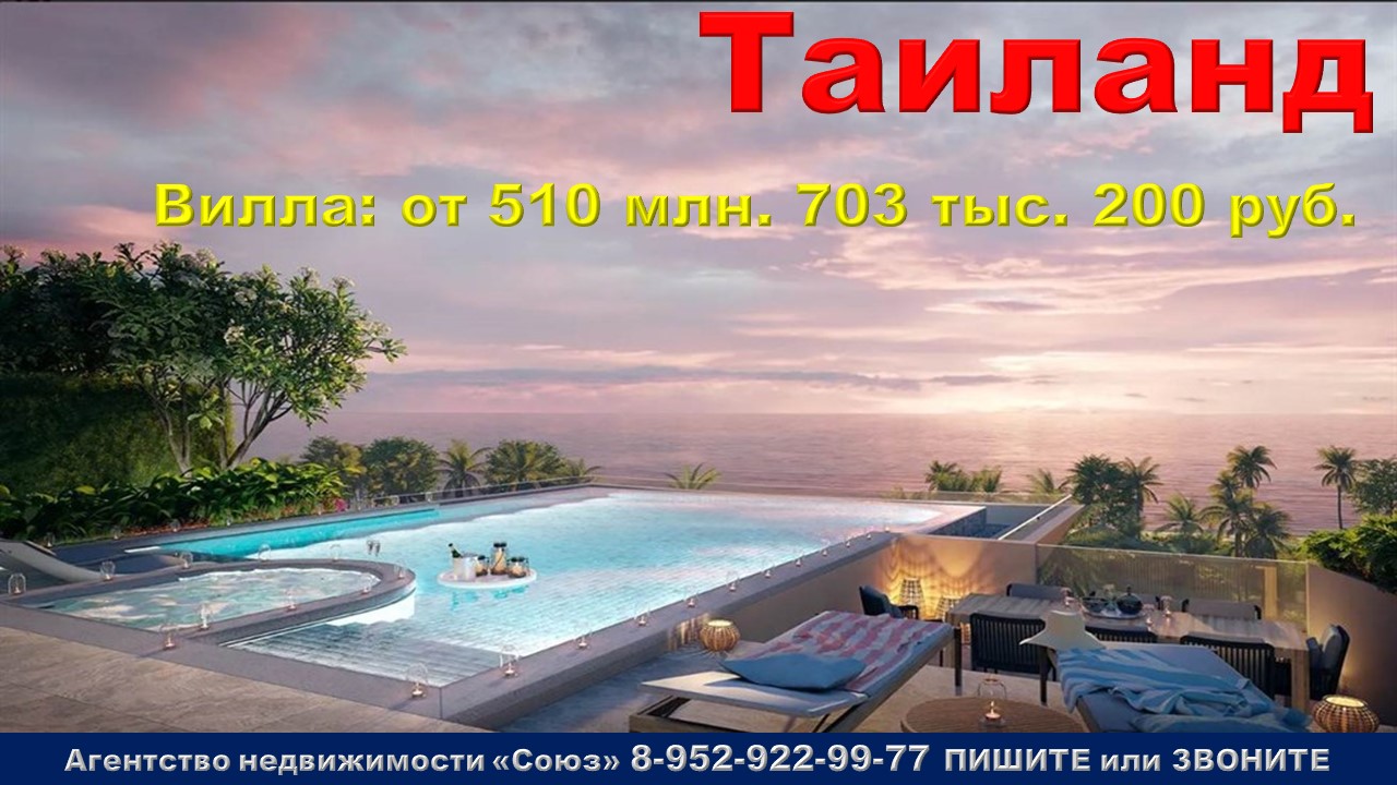 Подпишитесь на нас. Благодарим !!! https://www.youtube.com/@nedvigimoct/videos - мы на Ютубе https://dzen.ru/nedvigimoct?tab=longs&utm_referrer=dzen.ru - мы на Дзене https://rutube.ru/channel/27083000/videos/ - мы на Рутубе https://vk.com/club223108371 - мы в ВК https://ok.ru/lyubayan - мы в Ок Агентство недвижимости «СОЮЗ» Покупайте: Виллу в Таиланде. Пляж Лагуна, г. Пхукет, Агент по новостройкам: 89529229977 (WhatsApp) Цены на виллы точно такие же как и у застройщика. Виллы продаются БЕЗ РИЭЛТОРСКОЙ КОМИССИИ !!!. 4к. вилла: от 510 млн. 703 тыс. 200 руб. Площадь общая: 793 м2 Срок сдачи: 4 кв. 2025 Срок выдачи ключей: 4 кв. 2025 Договор: К-П Тип дома: монолитный Тип отделки: отделка "под ключ" Парковка: есть Потолки: 3,2 м. Преимущества:Живописные виды. Частный пейзажный бассейн с джакузи. Близость моря. Развитая инфраструктура. Душ на открытом воздухе. Навес на 2 машины. Внутренний двор/сад. Большая терраса у бассейна. Описание комплекса:Виллы расположены на пляже Банг Тао с мелким белым песком. На западе они обрамлены Андаманским морем, а на востоке — горами, покрытыми густыми джунглями. Резиденции находятся на территории всемирно известного закрытого курортного комплекса Laguna Phuket, завоевавшего множество международных наград. Виллы расположены всего в нескольких шагах от пляжа и живописных гор — это идеальное место для тех, кто мечтает жить на побережье. Неподалеку от резиденций находятся торговый центр, спа-салоны Banyan Tree, множество роскошных ресторанов и развлекательных заведений. Также на территории Laguna Phuket находится гольф-клуб Laguna Golf Phuket с «Лучшим полем для гольфа в Таиланде» по версии World Golf Awards. Уникальное расположение, просторные планировки и современный дизайн вилл делают их идеальным местом для уединенного отдыха, а благодаря непосредственной доступности объектов инфраструктуры, проживание на вилле становится исключительно удобным и приятным. Из окон вилл обращенных на запад открывается вид на Андаманское море. Основное жилое пространство выходит на большую террасу с большим частным бассейном, местами для отдыха и джакузи, расположенных среди ландшафтных садов. Спустившись вниз по большой спиральной лестнице, попадаете в гостиную и четыре просторных спальни, оформленных в древесных тонах в минималистическом стиле, подчеркивающем умиротворенность окружающего пейзажа. Большая многофункциональная комната прекрасно подойдет для домашнего кинотеатра, детской игровой комнаты или удобного рабочего кабинета. Владельцев недвижимости ожидает целый мир приемуществ. Членство в закрытом сообществе собственников недвижимости Sanctuary Club открывает доступ к безграничному разнообразию новых возможностей и впечатлений. Члены Sanctuary Club получают право эксклюзивного использования объектов Banyan Tree со скидками и привилегиями в сети Banyan Tree по всему миру. Помимо бесплатного членства в Laguna Golf Phuket владельцы недвижимости могут вступить в сообщество Banyan Tree Private Collection, которое открывает доступ к постоянно расширяющемуся портфолио объектов недвижимости, от элитных вилл Banyan Tree в экзотических уголках планеты до эксклюзивного жилья в самых популярных регионах мира. Собственники недвижимости могут круглосуточно пользоваться услугами консьержа и профессиональной команды, которая поможет в вопросах обслуживания и сдачи виллы в аренду. Обеспечивает круглогодичную заботу о доме.