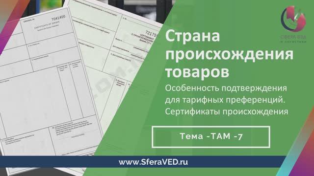 Видео-лекция (фрагмент): Тарифные преференции и страна происхождения товара. Сертификаты происхождения (код темы TAM_7, фрагмент занятия). Ведет к.э.н. А.Ю. Терешенкова по заказу Академия ВЭД и Логистики «СФЕРА» (С.-Петербург) www.sferaVED.ru Полная лекция на 45 мин представлена в дистанционном курсе или доступ к полному видео можно получить по заявке на обучение. Дистанционные программы: 1) Менеджер по внешнеэкономической деятельности (код программы VTD-K01) Подробнее о курсе: https://sferaved.ru/vtdk01_ved_i_logistika 2) Специалист по таможенным операциям. Таможенные курсы (код программы TDL-K01) Подробнее о курсе: https://sferaved.ru/tdlk01_tamojenie_kursy Ждем Вас в стенах нашего образовательного центра. Мы готовы создать программу по любому направлению обучения индивидуально для Вас или Вашей компании. Нашими специалистами принимается во внимание специфика развития и характер деятельности Вашего предприятия, а также индивидуальные пожелания заказчика. Очные (дневные и вечерние) и Дистанционные формы обучения (on-line, вебинар, дистант). Календарь курсов ВЭД и стоимость: http://sferaved.ru/kursy_ved_ctoimost Консультации по ВЭД и запись на обучение: https://sferaved.ru/contacts