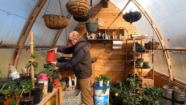 Petunia hanging basket time // Potting up some winter cuttings