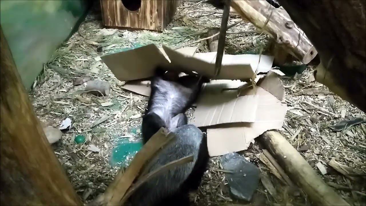 Медоеды мама с младшей доченькой после сна развлекаются в вольере 23.11.2023