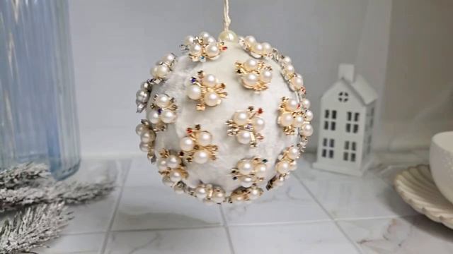 Декоративный ёлочный шар ЖЕМЧУЖНЫЙ ВАЛЬС, текстиль, белый, 10 см, 6500787A100