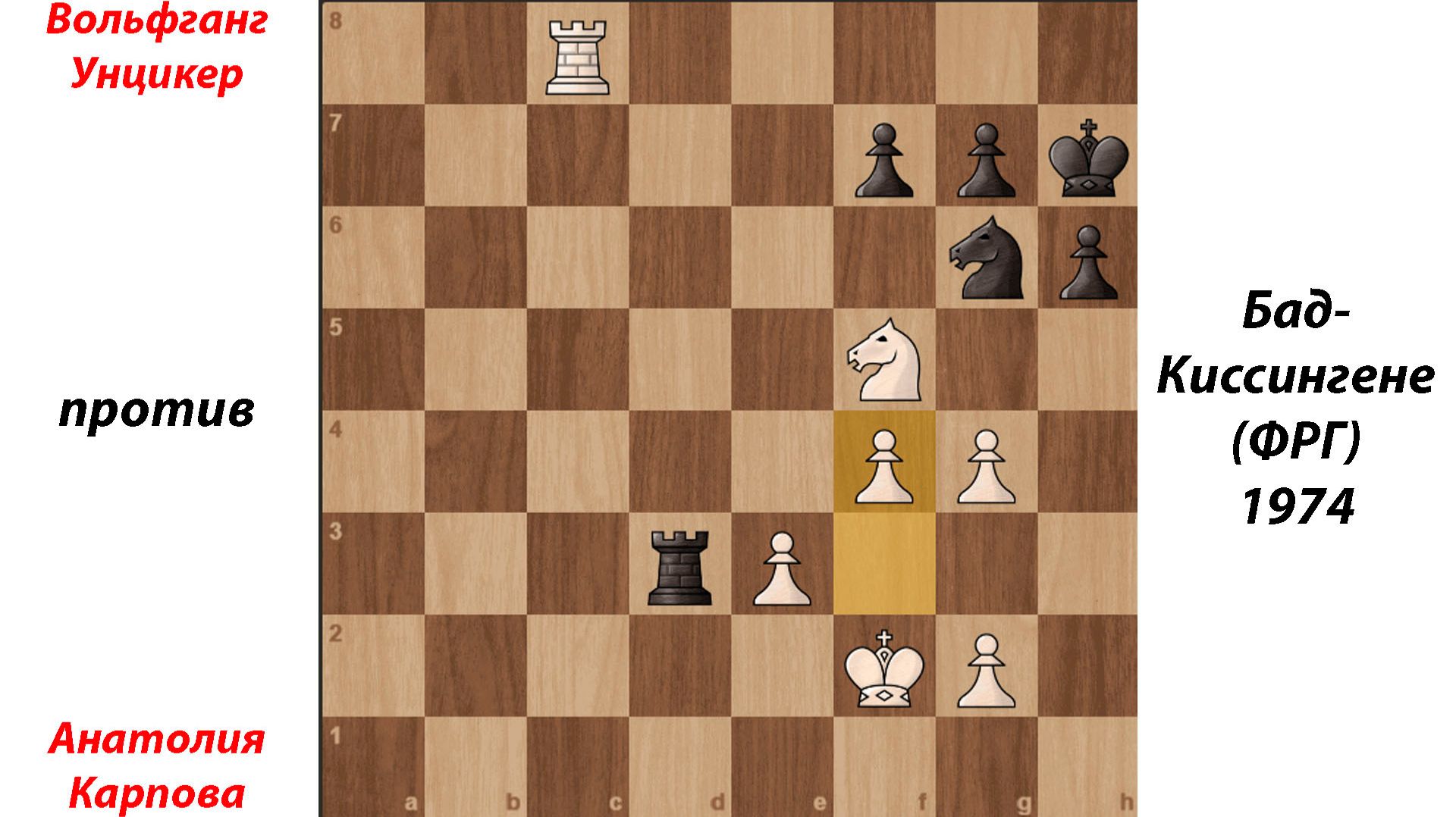 Вольфганг Унцикер против Анатолия Карпова. Бад-Киссингене (ФРГ), 1974. #шахматы #шахматныепартии #шахматнаятактика #анатолийкарпов #карпов