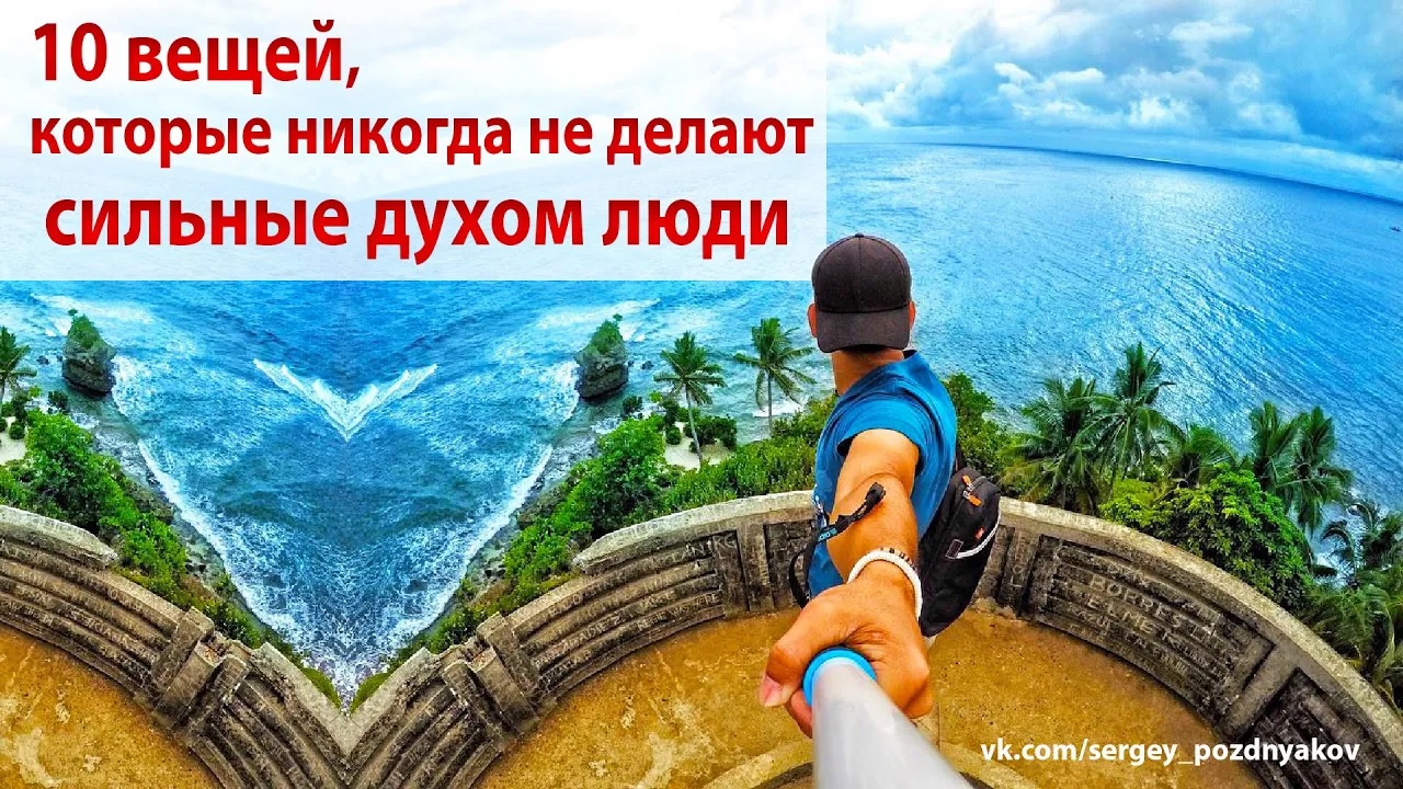 10 вещей, которые никогда не делают сильные духом люди Сегодня я расскажу вам о том, что делает по настоящему сильных духом людей. Я расскажу вам о 10 жизненных установках, эмоциях, поступках, которые нужно искоренить из своей жизни. И только тогда вы сможете закалить свой характер и с уверенностью преодолевать трудности на своём пути. И стать сильным духом. 1. Жалеть себя 00:00 2. Позволять другим контролировать себя 1:03 3. Бежать от перемен 1:19 4. Тратить свои силы на то, чего не можешь изменить 1:41 5. Стремиться быть хорошими для всех 2:16 6. Бояться оправданного риска 2:57 7. Быть зацикленным на своём прошлом 3:18 8. Завидовать чужому успеху 3:40 9. Бояться одиночества 4:02 10. Думать, что мир нам что-то должен 4:34 - Подписывайтесь на мой канал в YOUtube https://www.youtube.com/channel/UCQBy3iEELc0ltPAt_gkCkOQ - Я в Rutube https://rutube.ru/channel/26552914/ - Я VK https://vk.com/sergey_pozdnyakov - Я в ОК https://ok.ru/group51148294651980 - Я в Яндекс Дзен https://zen.yandex.ru/id/608c778a1f08643617f9a192 - Я RUS https://vk.com/away.php?utf=1&to=https%3A%2F%2Fyarus.ru%2Fu%2F7244001 - Моя БИБЛИОТЕКА https://vk.com/market-11000336?section=album_1 - #Сильныедухомлюди #Саморазвитие #Станьлучшейверсиейсебя #бизнес #успех #rutube #втопе