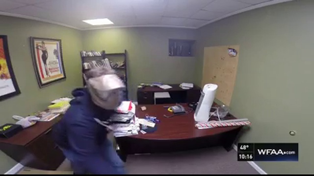 Our test participants are confronted by a man who has taken an office co-worker hostage
