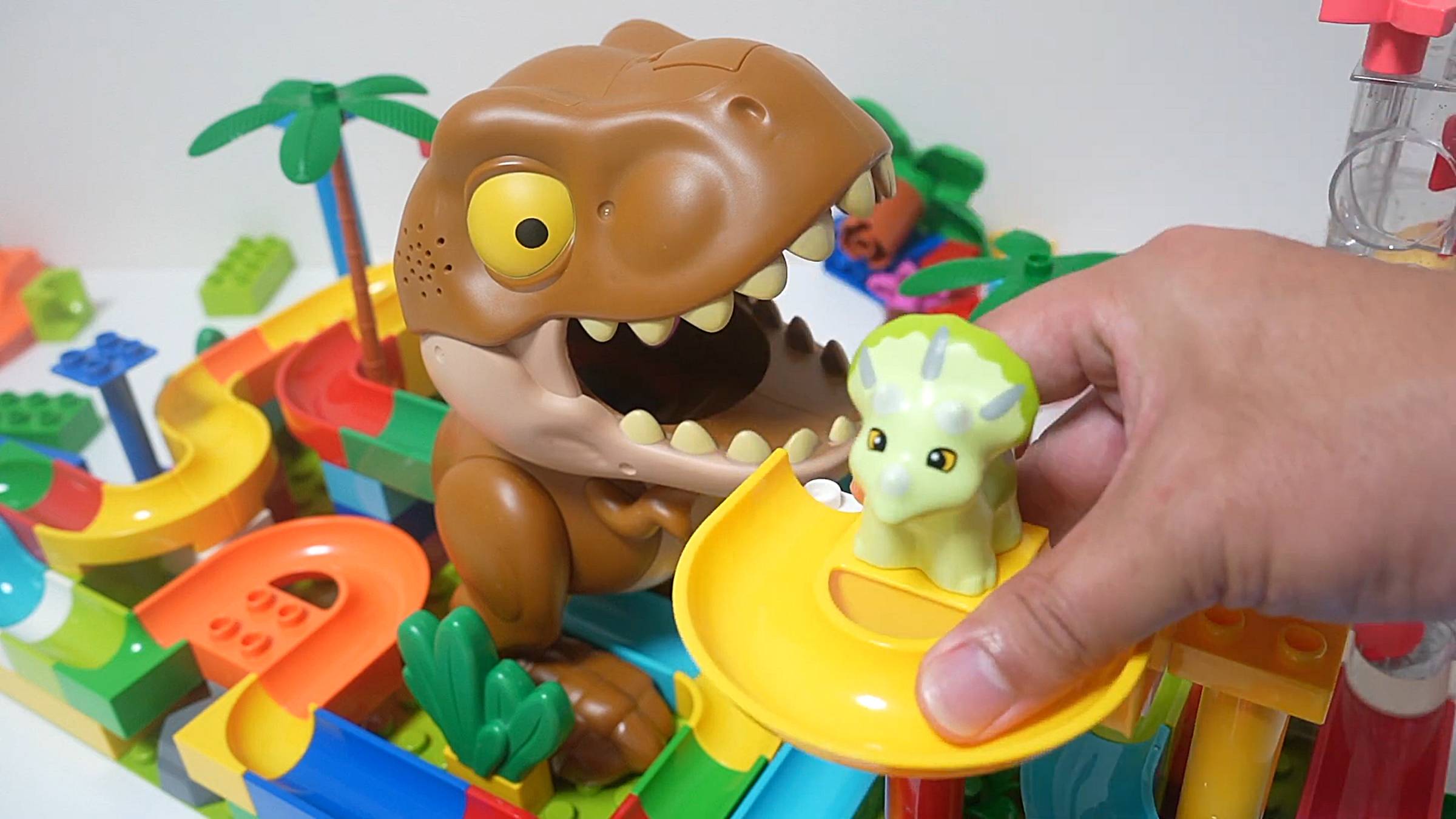 Развивающие игрушки для малышей. Динозавры. Конструктор Лего. Гонка шариков.