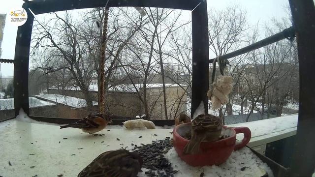 В эти морозные дни на кормушке за окном кабинета конторы заповедника «Черные земли» столпотворенье! Воробьи, большие синицы и вьюрки ведут борьбу за ресурсы, стараясь опередить конкурентов в поедании семечек. Больше всех недоволен соседями один малообщительный вьюрок, который старается прогнать синиц и других вьюрков, но слегка опасается местных ребят – домовых воробьёв. Вьюрок – певчая птица семейства вьюрковых отряда воробьинообразных, обитает на обширных лесных пространствах Евразии, от Скандинавии и до Охотского моря. Зимует в южных странах – Иране, Туркмении, Китае, а в теплые зимы, наряду с зябликами, зеленушками и дроздами, массово остаётся в южной части России.