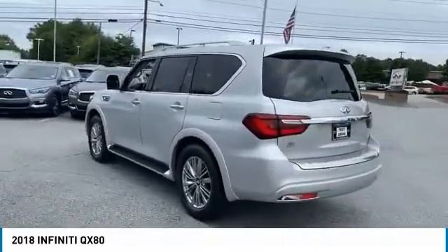 2018 INFINITI QX80 http://roswellINFINITI.com For more information on this vehicle and our full inventory, call us at 770-625-8500 Roswell INFINITI of North Atlanta 11405 Alpharetta Hwy Roswell GA 30076 INFINITI Certified Pre-Owned, Unlimited Mileage Warranty, Interest Rates From 2.99% For Up To 72 Months! Navigation, Streaming Bluetooth, Sunroof / Moonroof, Around View Camera, Premium BOSE Audio, 20 Inch Wheels, Heated Seats, Heated Steering Wheel, USB Interface, Memory Seats, Voice Recognition, Wood Trim, Remote Start, Parking Sensors, Leather, Satellite Radio, Push Button Start, LED Headlights with High Beam Assist, and much more! Complimentary First Year Basic Maintenance! Vehicle Inspected. Family Owned Dealership, In Business For Over 30 Years. One of the Original INFINITI Dealers, Reach Out Directly To Our Sales Team At 770-625-8500. Certified. CARFAX One-Owner. Clean CARFAX. 2018 INFINITI QX80 Liquid Platinum