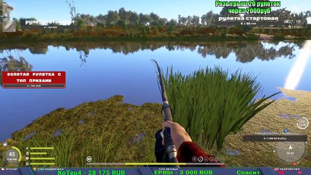 Поддержка донатом https://www.donationalerts.com/r/kalyamba11 Альтернативный донат https://new.donatepay.ru/@1032463 Если стрим лагает,смотри стрим на трово https://trovo.live/s/Kalyamba_na_Ribalke Мой ВК - https://vk.com/kalyantv НИК в игре kalyan11 НАШ ДИСКОРД СЕРВЕР https://discord.gg/mSbnTJK8TB Заказ водоема на 1 час - 500р ( весь стрим 2500р ) Модерка на канале 1100р ( каждая следующая на 100р больше) Озвучка доната на 40р,50р,100р,200р,300р,500р,1000р ✅Призы в рулетке СТАНДАРТ : ✔ катушка "РАПТОР 40" ✔ катушка "Оверлорд 88" ✔ катушка "Full metal 60" ✔ Среднелегкий спиннинг "Inspiration S78Ml" ✔ Тяжелый кастинговый спиннинг "Барракуда" ✔ Морское Донное удилище ✔ прем ( 3, 7, 30 дней) ✔ золото ( 1, 3, 5, 10, 20 ,50) ✔ билет на море ( 1, 3, 5 дней) ✔ голд наживка и др. ✅Призы в рулетке "СТАРТОВАЯ" ✔ катушка "silver80" ✔ катушка "Full metal 60" ✔ катушка "Черный калибр" ✔ катушка "Протон" ✔ катушка "Нарга 6000" ✔ Набор Фидерист и спинингист ✔ Карповик Фортуна ✔ фидерные удилища ✔ прем, золото, алкашка, наживки и тд Вечный ТОП ПОДДЕРЖКИ (11.05.2024) 1. Dimon_pokemonchik 119 784 2. Interceptor 75 508 3.Skreb79 71 261 4. une personne 68 619 5. Нарвал77 31 550