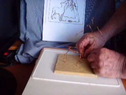 Каркас Алёнушки (с изгибом стоп) и животного крепят на готовый плинт строго по рисунку. Корректируют позу: головка Алёнушки наклонена, левая рука вытянута к головке Иванушки, правая вдоль туловища, платье широкое. Тазобедренный сустав ровный. Каркасы зафиксированы, готовы к облепке пластилином и лепке. Автор - художник Гончаров Николай Васильевич (1944-2025)
