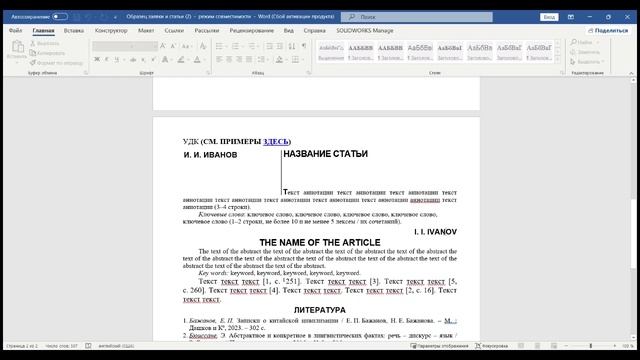 Видеоинструкция оформления статьи для сборника научных трудов «Пути Поднебесной»