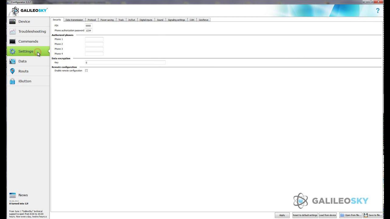 The description of GalileoSky terminal remote configuring process via the Configurator