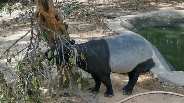 Тапир ест в зоопарке Khao Kheow Open Zoo, Паттайя, Тайланд