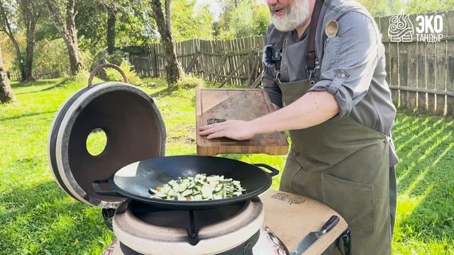 Жареха из кабачков с перцем, луком и помидорами разогрев (Рецепт для стадии разогрева тандыра, русская кухня) кабачки или цуккини - 2 шт, сладкий перец - 3 шт, помидоры мелкие - 5 шт, репчатый лук - 1 шт, кинза или петрушка - 30 г, чеснок, растительное масло, перец чёрный молотый, соль Кабачки и перец нарезать нарезать крупным кубиком, помидоры разрезать пополам, чеснок и зелень мелко порубить. Обжарить лук и перец на сковороде на растительном масле до размягчения, добавить кабачки, обжаривать 7 мин., добавить помидоры, обжаривать вместе 1 мин., добавить зелень и чеснок, соль и перец, перемешать и подавать как гарнир или самостоятельное блюдо.