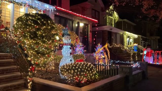 🇺🇸Прогулка по Нью-Йорку🎄 Прогулка с рождественскими огнями Дайкер-Хайтс 2022 года🎅🌟Бруклин