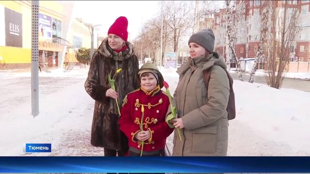 Накануне 8 Марта тюменок с праздником поздравили сотрудники МЧС. Спасатели дарили женщинам тюльпаны и сюрпризы.