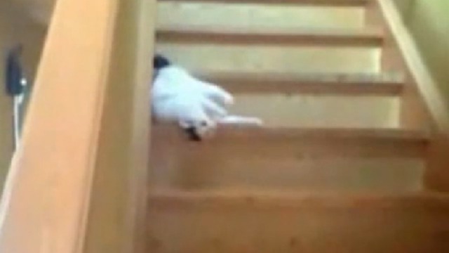 Кошка сползает со ступенек