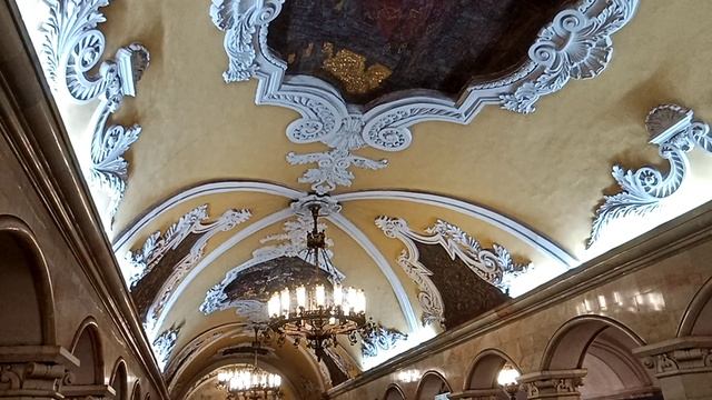 Метро «Комсомольская» расположена между станциями «Проспект Мира» и «Курская» кольцевой линии Московского метрополитена, в Красносельском районе столицы. История станции Станция открылась 30 января 1952 года и вошла в состав участка «Белорусская» - «Курская». История названия Название станции связано с Комсомольской площадью, которую в народе называют «площадью трех вокзалов». Сама же площадь получила название «Комсомольская» в честь 15-летия ВЛКСМ в 1933 году. Описание станции Тема оформления станции – «Борьба российского народа за свободу». Этой теме посвящены все панно, расположенные на своде станции. Здесь изображены выдающиеся политические и военные деятели, среди которых: Кутузов, Суворов, Минин, Пожарский, Дмитрий Донской и Александр Невский. Есть панно, изображающие советских солдат и офицеров под стенами Рейхстага. До 1963 года на станции были еще два изображения – «Вручение гвардейского знамени» и «Парад Победы». Но после развенчания культа личности Сталина, который был изображен на этих панно, их заменили изображениями Родины-матери на фоне Спасской башни Кремля и выступления Ленина перед красногвардейцами. Дополняют оформление станции вставки из мозаики и барельефы, изображающие оружие. В торце зала, расположенного рядом с большим эскалатором, находится мозаика ордена Победы на фоне красных знамен. В противоположном торце станции установлен бюст В. И. Ленину. Барельефы работы Г. И. Мотовилова украшают северный вестибюль станции. Станция имеет 68 восьмигранных колонн, шаг которых составляет 5,6 метров. Колонны украшены капителями и облицованы светлым мрамором. Пол выстлан розовым гранитом. Освещают зал станции подвешенные рожковые люстры. Потолок станции имеет желтый цвет. Технические характеристики «Комсомольская» – трехпролетная пилонная станция глубокого заложения, расположенная на глубине 37 метров. При строительстве станции использовались сборные чугунные конструкции. Протяженность станции – 190 метро, ширина платформы 10 метров. Вестибюли и пересадки За счет пересадок станция имеет самый большой в столице пассажиропоток – около 262 тыс. человек в день. Станция имеет несколько вестибюлей, выходящих к Ярославскому, Ленинградскому и Казанскому вокзалам. Северный и южный вестибюли обеих станций совмещены и служат для перехода на соседние линии. Южный вестибюль встроен в Казанский вокзал и имеет выход на Каланчевскую и Комсомольскую площади. Северный вестибюль выходит к Ленинградскому и Ярославскому вокзалам и к платформе «Каланчевская» Курского направления. В центре зала есть эскалаторы и лестницы, ведущие на «Комсомольскую» станцию Сокольнической линии. Северный вестибюль работает с 5:20 до 1:00, южный – с 5:30 до 1:00. На международной выставке в Брюсселе, проводимой в 1958 году, проект станции завоевал Гран-при. #2023 #россия #москва #метро #история