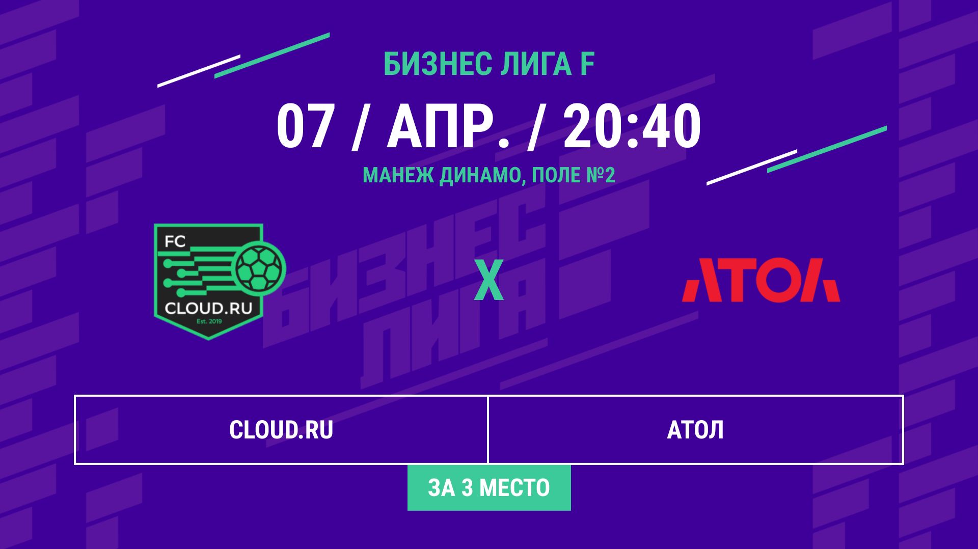 Бизнес Лига F | 13 сезон | CLOUD.RU - : - АТОЛ | Матч за 3 место