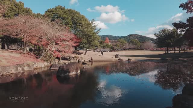 День отдыха, кормление оленей в парке Нара в Японии, звуки осенней природы