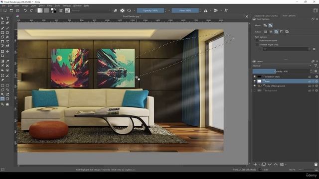42. Post processing in Krita. RENDERING MODERN LIVING ROOM in Blender видео уроки