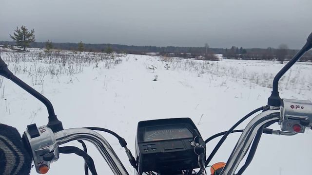 Мопед ЗиД 50 куб. испытание на поле глубоком снегу . выпал снег весной до 15 см
