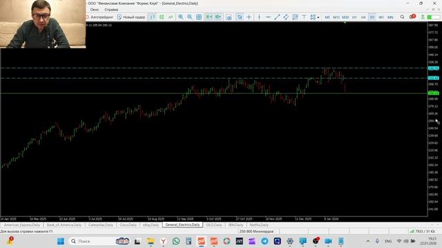 Трейдинг и инвестиции Обзор рынка акций 22-01-2026 AXP BAC CAT CSCO EBAY GE GILD IMB NFLX