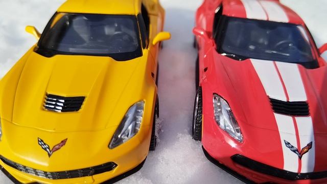 Сравнение моделей Chevrolet Corvet C7 от Mobicaro в масштабе 1:32