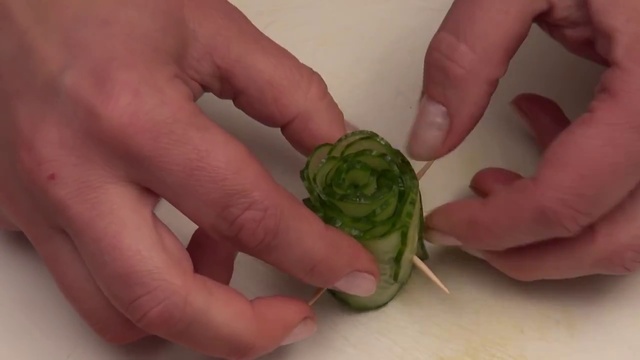 Украшение для салатов. Роза из огурца. Украшение из овощей. (1)