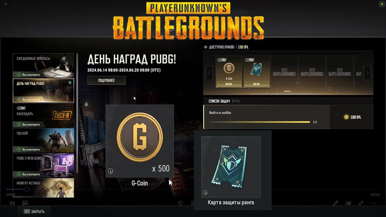 500 G-Coins за вход в PUBG с 14 по 20 июня✅500 G-Coins for logging into PUBG from June 14 to June20