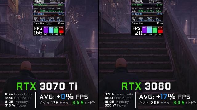 Thanks for watching & supporting me! ✔ RTX 3070 Ti 8GB► https://geni.us/3UbnB6n ✔ RTX 3080 10GB► https://geni.us/Vtzq ✔ Intel i9 11900K 11TH GEN 8c/16t ► https://geni.us/Ak4Saew ❗Affiliate Links❗ ✅All affiliate links have no additional costs for you✅ 💻 Testing System: • Windows 10 Pro ► https://bit.ly/3n2f81o • CPU ► i9 11900K 11TH GEN 8c/16t ► https://geni.us/Ak4Saew • GPU ► RTX 3070 Ti 8GB► https://amzn.to/3FGkqqD • GPU ► RTX 3080 10GB► https://amzn.to/3pEuPNN • CPU Cooler ► AIO Enermax Liqmax III ARGB ► https://geni.us/BDOQE • RAM ► Crucial RAM 16 GB (2x8) Dual Channel 3600 Mhz ► https://geni.us/sRPNcO • Hard Disk ► Samsung SSD 970 Evo ► https://geni.us/zHOZb • Motherboard ► MSI Z590 A Pro Gaming ► https://geni.us/G8Vjwik • Power Supply ► Gigabyte P850GM 850W ► https://geni.us/GYYIhB • Case ► Inter-tech C 701 Panorama ATX, Tempered Gl ►https://geni.us/wccMpe • Case Fans ► Miwatt RGB Series ► https://geni.us/PpAIGR • Monitor ► Samsung U28E590 4K ► https://geni.us/9QpvaYE • Gaming Keyboard ►Sharkoon Skiller SGK30 ► https://geni.us/ie96lI1 • Videocam ► Sony Vlog-Kamera ZV-1 ► https://geni.us/BBzK6k 🎮 Games • Dying Light 2 🔥 38,39 $ https://bit.ly/3HO9S9i • Far Cry 6 🔥 41,09 $ https://bit.ly/3F8WsD5 • God of War 🔥 36,29 $ https://bit.ly/3F6GOIr • Forza Horizon 5 🔥 54,79 $ https://bit.ly/3naEaeK • Battlefield 2042 🔥 35,59 $ https://bit.ly/3f3FEmn • Days Gone 🔥 23,29 $ https://bit.ly/3zLyc95 • Halo Infinite 🔥 53,39 $ https://bit.ly/3GcCXLf • Call of Duty Vanguard 🔥 58,89 $ https://bit.ly/3HJWIu4 • Back 4 Blood 🔥 32,89 $ https://bit.ly/3HNSPo0 • Age of Empires 4 🔥 43,79 $ https://bit.ly/33fUBPw • Microsoft Fight Simulator 🔥 65,49 $ https://bit.ly/3f4yEFT • Cyberpunk 2077 🔥 20,49 $ https://bit.ly/3F9ZhE7 • Minecraft 🔥 20,49 $ https://bit.ly/33hXMGI • Assassin's Creed Valhalla 🔥 27,39 $ https://bit.ly/3f7ugpL • The Medium 🔥 31,19 $ https://bit.ly/3t6anrn • Horizon Zero Dawn 🔥 17,09 $ https://bit.ly/3f28YtJ • GTA V 🔥 16,39 $ https://bit.ly/3JQENDP • New World 🔥 https://bit.ly/3GbMemL 🔥More Cheap Games on Gamivo.com🔥 https://gamivo.com?glv=aypv5u91 ✅GPU´s / Video Cards✅ ✔ RTX 2060 12 GB► https://geni.us/F1p3u ✔ RTX 3060 12GB► https://geni.us/RGgG ✔ RTX 3060 Ti 8GB► https://geni.us/K6u0Aw0 ✔ RTX 3070 8GB► https://geni.us/iCCnJ ✔ RTX 3070 Ti 8GB► https://geni.us/3UbnB6n ✔ RTX 3080 10GB► https://geni.us/Vtzq ✔ RTX 3080 Ti 12GB► https://geni.us/4LWfSb ✔ RTX 3090 24GB► https://geni.us/7NQ9MB ✔ RX 6600 8GB► https://geni.us/03G8ib ✔ RX 6600 XT 8GB► https://geni.us/PGeLH ✔ RX 6700 XT 12GB► https://geni.us/eZQJsFl ✔ RX 6800 16GB► https://geni.us/Tpfx5v3 ✔ RX 6800 XT 16GB► https://geni.us/UftC ✔ RX 6900 XT 16GB► https://geni.us/n6IYoS ✅CPU´s / Processors✅ ✔ Intel i5-11400F 11TH GEN 6c/12t ► https://geni.us/YfGFaew ✔ Intel i5-12400F 12TH GEN 6c/12t ► https://geni.us/so3FCt ✔ Intel i5 10600K 10TH GEN 6c/12t ► https://geni.us/GVGuCI ✔ Intel i5 11600K 11TH GEN 6c/12t ► https://geni.us/4wNpXP1 ✔ Intel i5 12600K 12TH GEN 10c/16t ► https://geni.us/LJYLT ✔ Intel i7 10700K 10TH GEN 8c/16t ► https://geni.us/Smtjc ✔ Intel i7 11700K 11TH GEN 8c/16t ► https://geni.us/ziW6pg ✔ Intel i7 12700K 12TH GEN 12c/20t ► https://geni.us/WqD6U ✔ Intel i9 10900K 10TH GEN 10c/20t https://geni.us/py8g ✔ Intel i9 11900K 11TH GEN 8c/16t ► https://geni.us/Ak4Saew ✔ Intel i9 12900K 12TH GEN 16c/24t ► https://geni.us/JEA8N ✔ Ryzen 5 5600X 5TH GEN 6c/12t ► https://geni.us/1wJKg ✔ Ryzen 7 5800X 5TH GEN 8c/16t ► https://geni.us/lqXb ��� Ryzen 9 5900X 5TH GEN 12c/24t ► https://geni.us/b0hQNk 0:00 Intro - Preview: RTX 3070 Ti & RTX 3080 l Games 0:25 Days Gone | 1080p, 1440p, 2160p 1:49 Cyberpunk 2077 | 1080p, 1440p, 2160p 3:12 Minecraft Ray Tracing | 1080p, 1440p, 2160p 4:36 Chernobylite | 1080p, 1440p, 2160p 6:00 Hitman 3 | 1080p, 1440p, 2160p 7:24 Control | 1080p, 1440p, 2160p 8:48 Cod Warzone | 1080p, 1440p, 2160p 10:10 Pubg | 1080p, 1440p, 2160p 11:38 Game Settings Each benchmark run is repeated at least three times. The average value from all three runs is entered into the index. Jeder Benchmark-Durchlauf wird mindestens drei Mal wiederholt. In den Index eingetragen wird der Durchschnittswert aus allen drei Durchläufen. Каждый прогон бенчмарка повторяется не менее трех раз. В индекс вводится среднее значение по всем трем прогонам. Geforce RTX 3070 Ti vs RTX 3080 Test in 8 Games // + i9 11900K // 1080p, 1440p, 2160p rtx 3070ti,3070 ti,rtx 3070 ti benchmark,rtx 3070 ti 4k,benchmark,test,comparison,hardware for gamers,1440p,1080p,vs,PUBG,1080p gaming benchmark,rtx 3070 ti i9 11900k,rtx 3070 ti ray tracing,minecraft,minecraft 4k ray tracing,days gone,hitman 3,i9 11900k,RTx 3080 Benchmark,RTX 3070 ti vs Rtx 3080,rtx 3080 i9-11900k,warzone,control,chernobylite,cyberpunk 2077,msi rtx 3070 ti gaming x trio,gigabyte rtx 3080 gaming oc