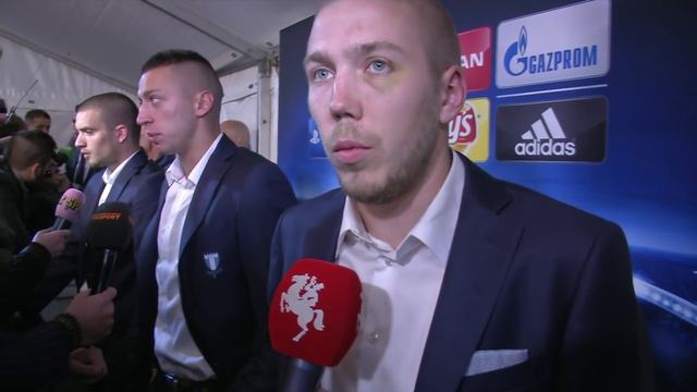 MFF-backen intervjuas av Mattias Hjälm efter Champions League-matchen mot Real Madrid.