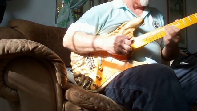 "The Wages of Sin" with CM Daugherty mid-scooped pickups. Instrument made by Middle B guitars. Body is carved tamarind with a maple neck. Kluson locking tuners.