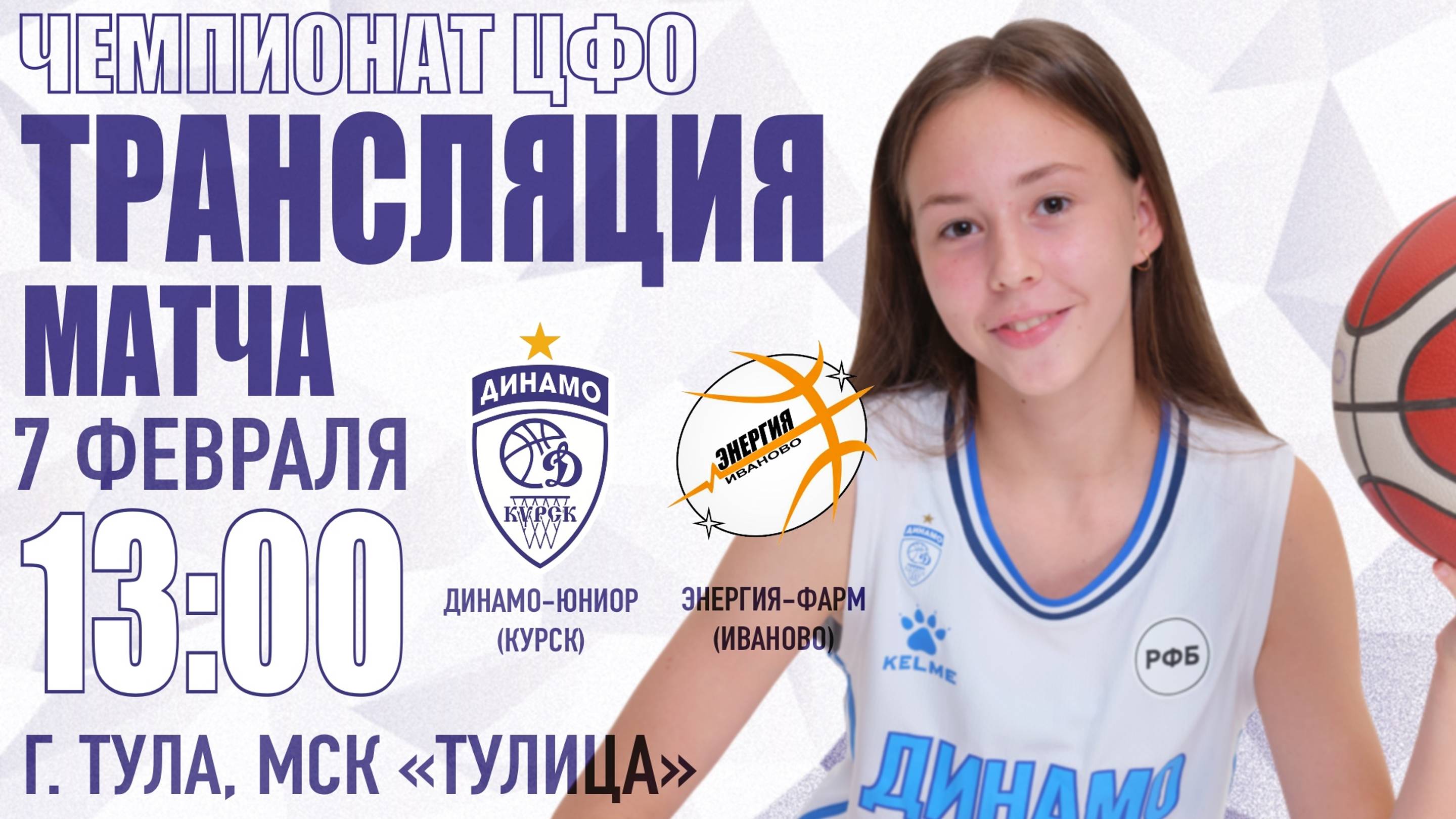 07.02.2025 13:00 Динамо-Юниор (Курск) - Энергия-Фарм (Иваново) Чемпионат ЦФО, женщины, Круговой турнир Арена: Тула, МСК "Тулица", ул.Санаторная д.3 Статистика: https://russiabasket.ru/games/871516?apiUrl=https://org.infobasket.su&lang=ru