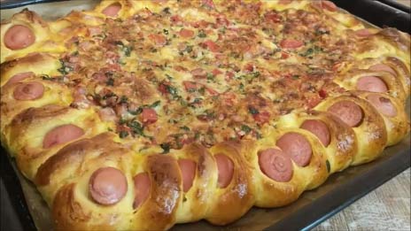 Пирог с колбасой, овощами и сыром Пицца в домашних условиях