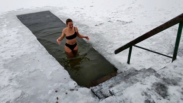 Моржевание, закаливание в проруби на Южном озере в Черноголовке, при температуре воздуха -17 градусов.