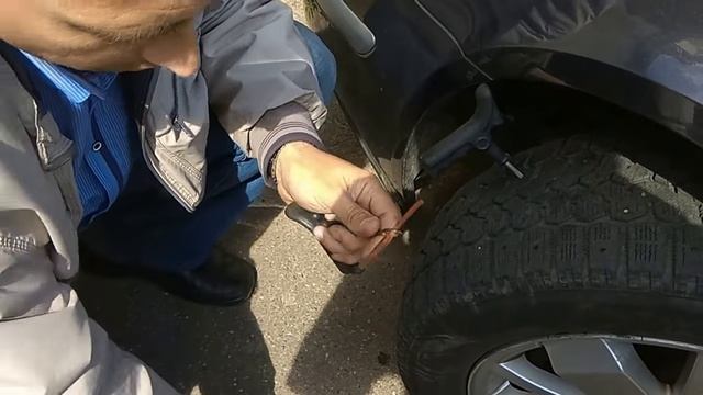 Быстрый ремонт бескамерных шин в дороге жгутом