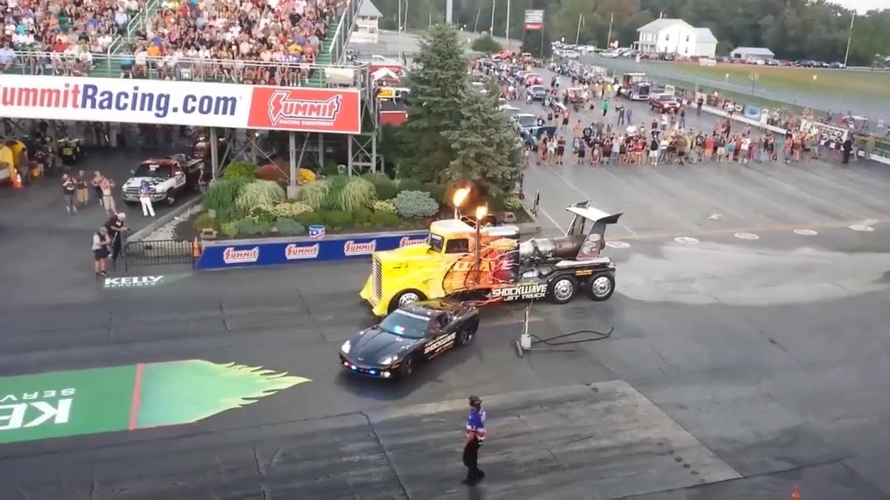 Грузовик с реактивным двигателем разрушает асфальт