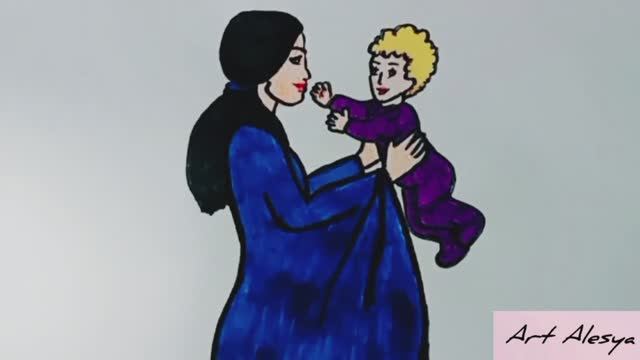 Рисую маму с ребенком!