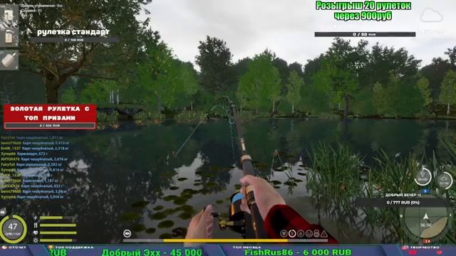 Поддержка донатом https://new.donatepay.ru/@1032463 Альтернативный донат https://www.donationalerts.com/r/kalyamba11 5536913964533059 карта Тинькоф Если стрим лагает,смотри стрим на трово https://trovo.live/s/Kalyamba_na_Ribalke Мой ВК - https://vk.com/kalyantv НИК в игре kalyan11 НАШ ДИСКОРД СЕРВЕР https://discord.gg/pFsEn9e9 Заказ водоема на 1 час - 500р ( весь стрим 2500р ) Модерка на канале 1200р ( каждая следующая на 100р больше) Озвучка доната на 40р,50р,100р,200р,300р,500р,1000р ✅Призы в рулетке "ЗОЛОТАЯ" ✔ ЗОЛОТО ✔ ПРЕМ ✔ КАТУШКИ ЮБИЛЕЙНАЯ БОРЕЛИКА, ВЕНГИ, ТАЙГА, СИЛЬВЕР 80, И другие ✔ ПАЛКИ ПИЛКЕРНАЯ, ДОНКА МОРСКИЕ, ✔ РОД ПОД, СТУЛЬЯ ✅Призы в рулетке СТАНДАРТ : ✔ катушкИ ЮБИЛЕЙНАЯ БОРЕЛИКА, ВЕНГИ, ТАЙГА, СИЛЬВЕР 80, И другие ✔ катушки 60 для медного ( ЭВИИ, НАТОРЫ, ГОЛДА, и тд) ✔ ПИЛКЕРНОЕ УДИЛИЩЕ КОРОЛЕВА ОКЕАНА ✔ Морское Донное удилище ✔ прем ( 3, 7, 30 дней) ✔ золото ( 1, 3, 5, 10, 20 ,50) ✔ билет на море ( 1, 3, 5 дней) ✔ голд наживка и др. ✅Призы в рулетке "СТАРТОВАЯ" ✔ катушка "silver80" ✔ катушка "БЕЛЫЙ КАЛИБР" ✔ катушка "Черный калибр" ✔ катушка "Протон" ✔ катушка "Нарга 6000" ✔ Набор Фидерист и спинингист ✔ Карповик Фортуна ✔ фидерные удилища ✔ прем, золото, алкашка, наживки и тд P.s Рулетка это не казино, а награда за поддержку стримера. Вечный ТОП ПОДДЕРЖКИ (11.05.2024) 1. Dimon_pokemonchik 119 784 2. Interceptor 75 508 3. Skreb79 71 261 4. une personne 68 619 5. Нарвал77 31 550