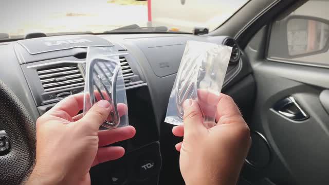 Установка хромированных накладок с Aliexpress для маленьких боковых сопел печки на LADA Granta FL