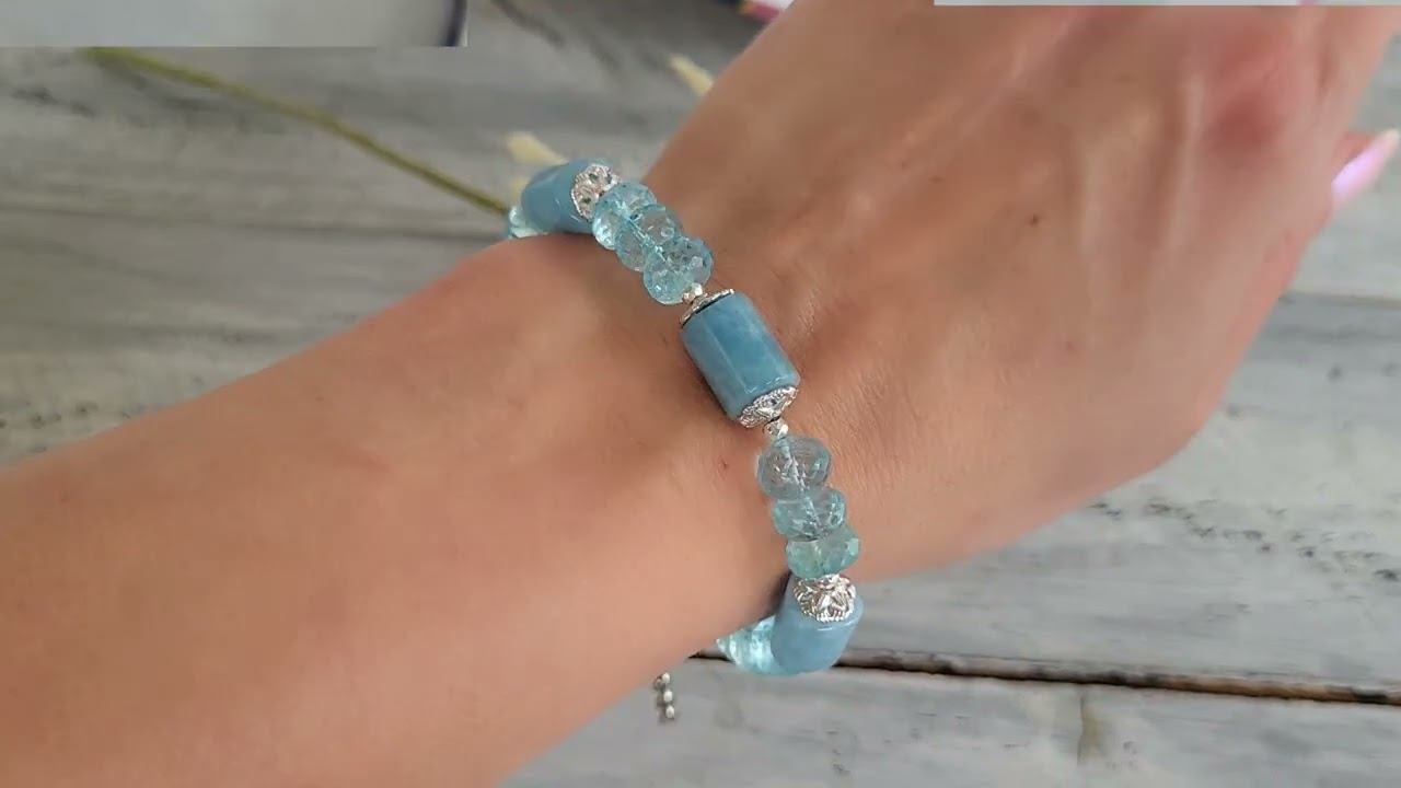 Браслет из аквамарина, топаза голубого