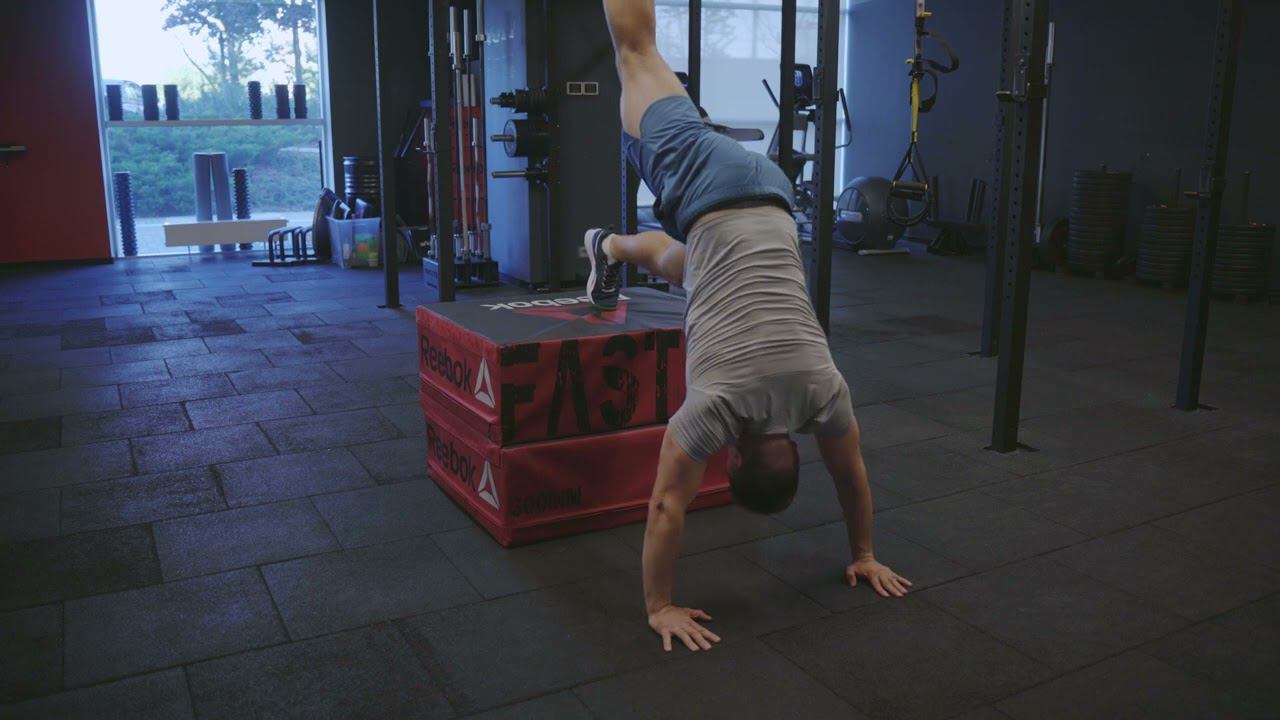Отжимания в стойке на руках с одной ногой на коробке/ Single leg box HSPU