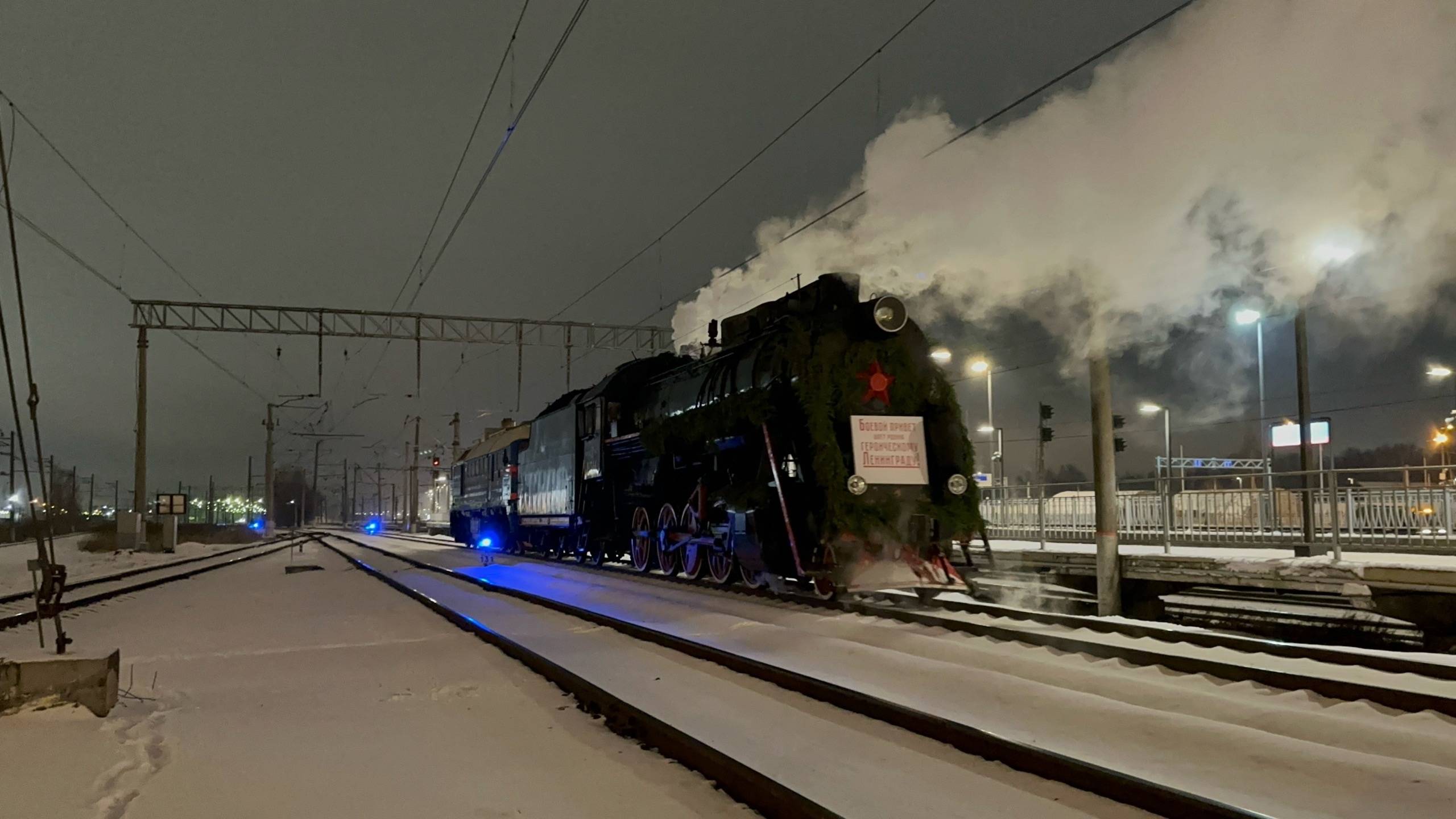 "Подача с опозданием 2 часа!" Тепловоз ДМ62 - 1791 с паровозом Л - 1344 на ст.Шушары, февраль 2025 г