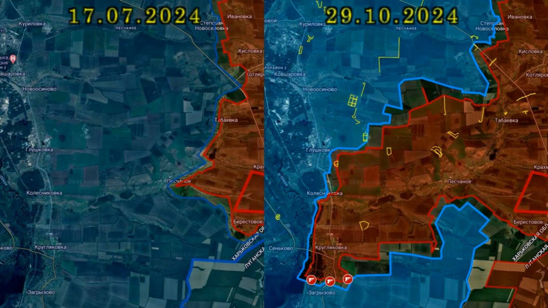 Карта боевых действий в районе Кругляковки с июль по октябрь 2024 года