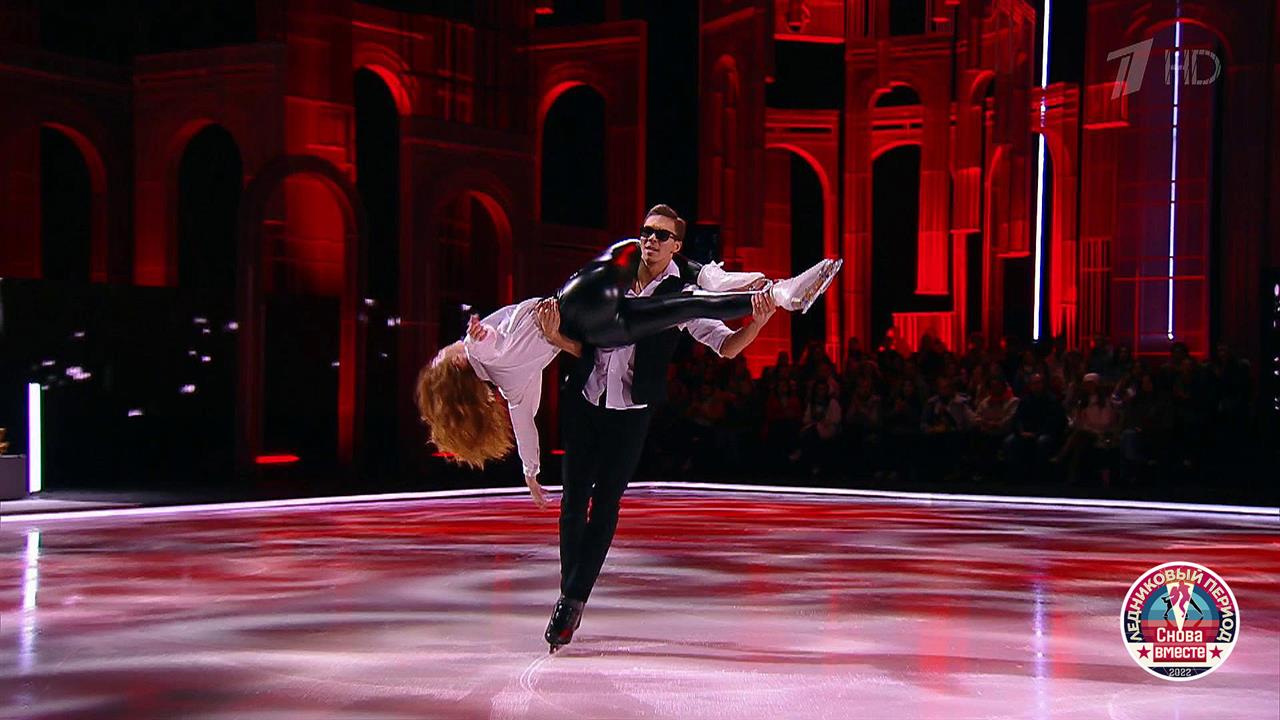 На льду — певица Наталья Подольская и олимпийский чемпион Дмитрий Соловьев. Пара выступает под песню «You Can Leave Your Hat On» в исполнении Джо Кокера.